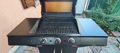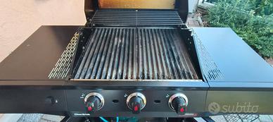 usato pochissimo tre bruciatori con accensione elettrica piastre in ghisa taglia fiamma in inox ampio gavone per la bombola grande completo di copertura esterna impermeabile
