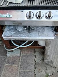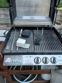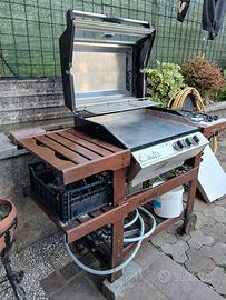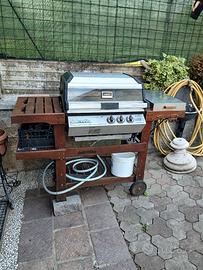 barbecue a gas metano o modificabile a gpl struttura in legno rinforzato con aggiunta di piastra in acciaio inox, 2 fornelli , motorino x girarrosto. perfetto