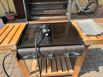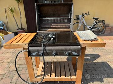 Vendo barbecue a 3 fuochi con 1 piastra in ghisa e 1 in pietra lavica con ruote. Solo ritiro brevi mano non spedisco