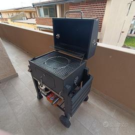 - Carrello con ripiani per appoggiare utensili, piatti e carbone: tutto a portata di mano.