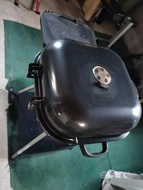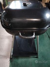 Vendo barbecue con doppio appoggio e teglia, con vano inferiore per la raccolta della cenere, manopola superiore per ingresso e regolazione aria, con ruote; Utilizzato 2 volte e ben conservato;