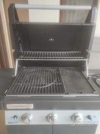 marca Campingaz.Dotato di un fornello laterale , griglia superiore per cottura verdure, piastra liscia laterale e griglia centrale.