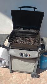 vendo barbecue da giardino, a gas Utilizza pietre laviche per distribuire il calore in modo uniforme. Caratteristiche: È dotato di due bruciatori affidabili e un sistema di accensione rapido. Design: Presenta ripiani laterali comodi per la preparazione dei cibi e manopole per la regolazione della temperatura. Materiali: Struttura in metallo con coperchio per la cottura a forno.
