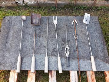 Vendo barbecue da giardino artigianale a legna completo di accessori con griglia in acciaio Inox e pietre refrattarie in ottime condizioni. Dimensioni Larghezza 1metro per profondità 70cm. H braciere 80cm.