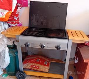 barbecue da giardino a gas con 3 fuochi carrello con ruote con coperchio con attacco bombola da ritirare con mezzo proprio
