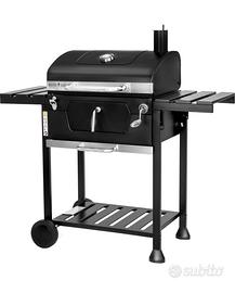 MasterCook - Barbecue A Carbonella Friend Con Doppia Griglia E Regolazione Cestello, BBQ Carbonella Con Coperchio e affumicatoio, Termometro, Ripiani Pieghevoli,