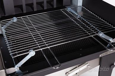 DETTAGLI ROSSOFUOCO , BARBECUE FALO' SOLO, A LEGNA / CARBONE. Robusto, funzionale – Con braciere per produrre carbone dalla legna – Sistema di regolazione dell’altezza della griglia.