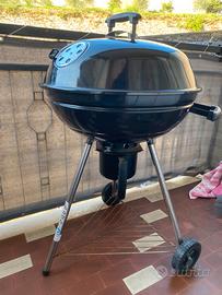 Comode rotelle per il trasporto o per spostamenti vari. Il coperchio è dotato di un gancio all'interno, per appenderlo alla padella e non lasciarlo a terra quando lo sollevi per controllare la cottura. Il barbecue dispone di diverse griglie: una per cucinare, una per la carbonella e una sui piedi per riporre i tuoi accessori. Un termometro permette di controllare la cottura.Raccoglitore per la cenere con manico per facilitare la pulizia.