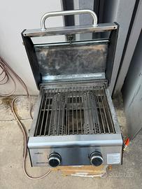 Barbecue Grill Furst , nasce come barbecue da campeggio , modificato da un tecnico a gas metano ( quello di casa) se si cambiano gli ugelli puo tornare ad uso classico con la bombola. Usato ma tenuto bene com da foto , dimensioni 46x45x35