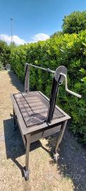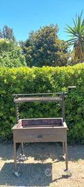 Vendo barbecue in ferro alto 150 largo 80 e profondo 60 con griglia di 70x50 circa, con ruote in buono stato (come da foto), regolabile in altezza con sistema a carrucola, con cassetto porta cenere, piano d'appoggio griglia interna per brace e griglia in acciaio per la cottura.