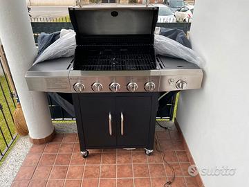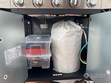Tutto in inox con mobiletto in acciaio verniciato, tanto spazio oltre la bombola
