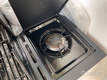 Tutto in inox con mobiletto in acciaio verniciato, tanto spazio oltre la bombola