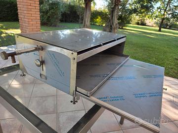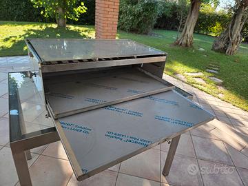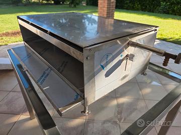 barbecue cottura a rovescio senza fumo, con fuochi separati, con due rubinetti, completamente inox 304 15/10, con guida regolabile, vaschetta raccogli liquidi, cassetto estraibile, a gpl o metano