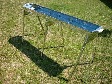Cucina 96 arrosticini oppure 48 spiedini Lunghezza utili vasca 150 cm, Lunghezza totale 161cm. Larghezza 26 cm. Spessori lamiere da 1.5 a 3 mm