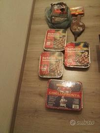 Barbecue istantaneo 3 scatole, grigliapronta 1 scatola, Fornet accendifuoco 16 batterre, carbonella 2,5 kg. In blocco accessori per il barbecue, nuovo, vendo causa inutilizzo.