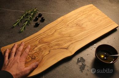 Immagina un oggetto che racchiude decenni di sole e terra. Questo maestoso tagliere da 69 cm non è solo legno, ma un frammento di natura viva. Con il suo spessore generoso di 3,5 cm e le venature che danzano come fiamme, ogni pezzo è una scultura irripetibile.