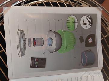 Barbecue lotus, a carbonella con ventola integrata, utilizzabile anche in tavola. Usato 2 volte, perfetto con la sua sacca, cavetto di ricarica ed istruzioni. No perditempo