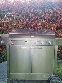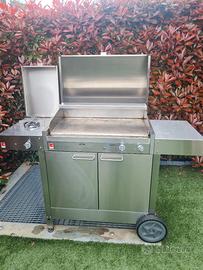 Barbecue serie 80 piastra liscia + un fornello piccolo a gas +carrello chiuso , peso totale kg 82 di acciaio inox , piastra per cucinare da 80 centimetri in acciaio AISI 330 alimentare , prezzo a nuovo 3000 ,11 euro più Iva , vendo x inutilizzo usato x circa 18 / 20 grigliate, funziona perfettamente , naturalmente lo devo pulire , più telo originale con cui lo copro come da foto ...no perditempo ...prezzo non trattabile spedizione a carico del cliente possibilmente in contanti al momento del ritiro , si può smontare e mettere in un baule capiente di una macchina