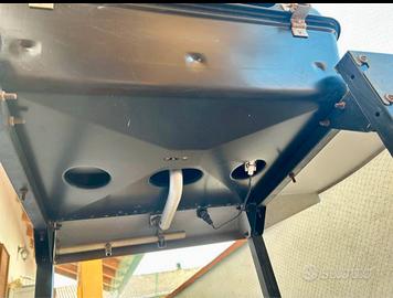 Barbecue mai usato con pietra lavica e coperchio di copertura.