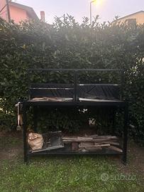 Vendo bbq tutto in ferro con doppie griglie in acciaio inox con sali e scendi a monovella indipendenti