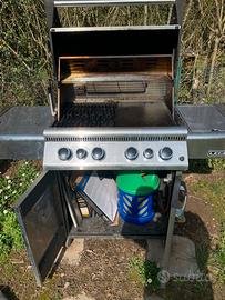 Causa cambio abitazione vendi bellissimo barbecue Napoleon Legend (ora Rogue). N.4 bruciatori, arrostitore ad infrarossi posteriore e su aletta laterale da 800 gradi per sigillare la carne. Troverete: 2 griglie di serie, 1 piastra in ghisa aggiuntiva, vasca per carbonella, girarrosto, sacchi di carbonella, 2 bombole in vetroresina (1 piena), telo di copertura. Naturalmente ritiro a casa.