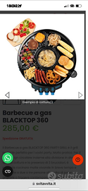 Barbecue a gas ideale per giardino e campeggio in quanto le gambe sono richiudibili e ha la sua sacca per il trasporto. 80 cm circa di diametro si possono cucinare varie cose tutte insieme e si può anche friggere .