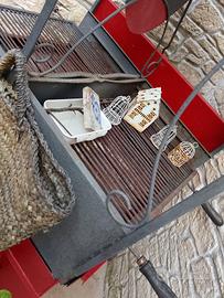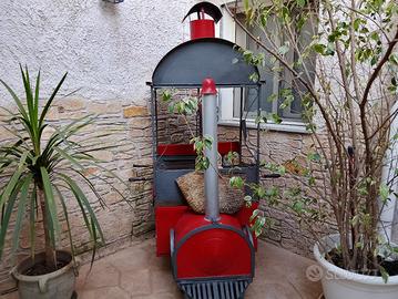 a forma di trenino con mensola e doppio porta legna . un lato per il pesce e il 2 lato carne occasionissima