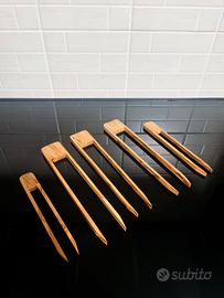 Pinza in legno naturale di ulivo realizzata a mano per barbecue, padelle, piastre.... Utile per girare carne, salsicce, bistecche, verdure etc...