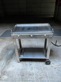 Vendo barbecue professionale a gas in acciaio inox marca Planet completo di carrello con ruote per facile spostamento e cappa/coperchio.