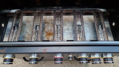 Le griglie sono in ghisa e hanno un design pensato per far scivolare i grassi direttamente nel raccoglitore sottostante, rendendo la pulizia molto più semplice.