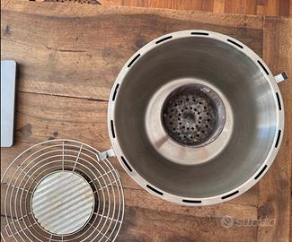 Pratico barbecue da balcone o campeggio, alimentato a batteria; piccoli segni di usura sulla griglia, ma come nuovo.
