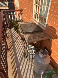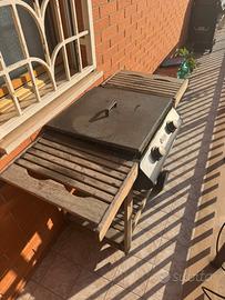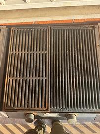 Barbecue a gas con carbonella piu griglie inghisa, funzinante ma rovinato. Accenzione elettrica funzionante. Alcuni punti degli erogatori sono consumati e non fa fiamma regolare. Fondo rimovible danneggiato, ma rimovibile. Bombola e tubo inclusi