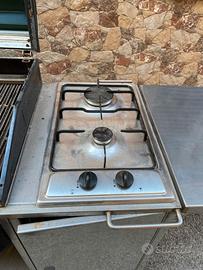 Comprensivo di friggitrice elettrica integrata e doppio fornello a gas, fori per ombrelloni.