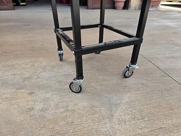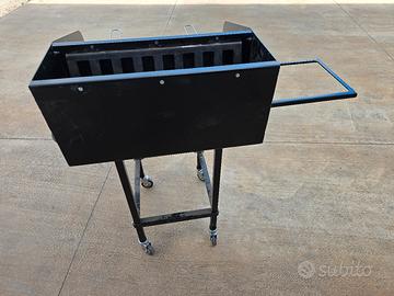 Barbecue rettangolare con griglia in acciaio inox 33x60cm. Struttura in ferro verniciato alle polveri color nero e mattoni refrattari. Realizzazione artigianale, no prodotto commerciale. Completo di piano di appoggio ed accessori per caciocavallo impiccato.