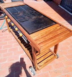 barbecue barby uno piu a gas completamente revisionate legno teak completo di coperchio non visibile in foto