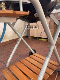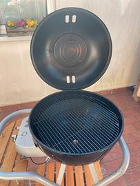 Ottimo per grigliate e pizza Il corpo della griglia, l'imbuto e la griglia sono realizzati in acciaio smaltato in porcellana. Sistema bruciatore smaltato 5,6 kW/h con accensione Imbuto girevole EASY FLIP per cottura diretta e indiretta. Cerniera del coperchio e termometro integrato. Struttura in acciaio verniciato a polvere con ruote, ripiano superiore anteriore con gradino in legno integrato Dimensioni: 60 x 45 x 105 cm (lunghezza x larghezza x altezza), peso 22,8 kg, diametro griglia 48 cm.