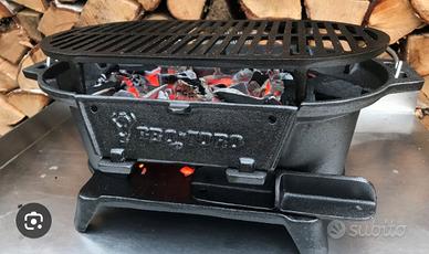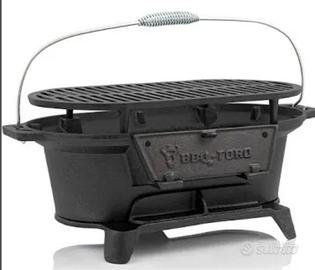 Questo prodotto è un barbecue a carbone stile hibachi della marcaBBQ-Toro. Materiale:Ghisa resistente, pre-stagionata e pronta all'uso. Dimensioni:50 cm di lunghezza, 25 cm di profondità e 23 cm di altezza. Caratteristiche:Dotato di maniglia per il trasporto, piedini per la stabilità, uno sportello frontale per aggiungere carbone senza rimuovere la griglia e una valvola di ventilazione regolabile. Utilizzo:Ideale per grigliate portatili, picnic e campeggio. Le immagini rappresentano esattamente il prodotto in vendita. Prodotto usato ma in perfette condizioni.