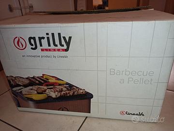 Barbecue a pellet Grilly Happy della Linea VZ. Usato poco. Dimensioni 36*36*23 cm. Griglia in ghisa. Facile da trasportare nella sua scatola originale. Pochissimo fumo, grazie al sistema di pirolisi. Con accessori per pulire la griglia. Perfetto per grigliare anche su un terrazzino.