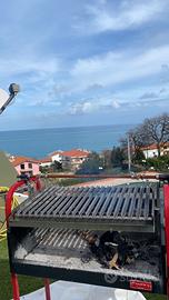 Vendo barbecue fatto con lamiere di 3mm, tutto in ferro verniciato a fuoco, griglia 80cmx40cm canalata e contenitore di acciaio inox per raccogliere il grasso. Regolabile in altezza. Matonelle refrattarie per mantenere meglio il calore. Spazio per fare le brace, tavolo d’appoggio e atrezzi.