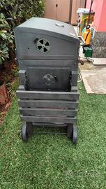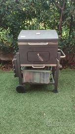 Barbecue Usato ma in discrete condizioni e riverniciato con vernici x alte temperature. Unico lavoro da fare, è inserire una lamiera forata come supporto carbonella perché nella zona centrale di è creato un buco a causa usura. io ho inserito una padella forata per le caldarroste e funziona benissimo. ma è sufficiente una lamiera forata appoggiata. il coperchio e il termometro completano il barbecue per tante grigliate ancora di ottima qualità grazie al sistema di gestione distanza carbonella-griglia