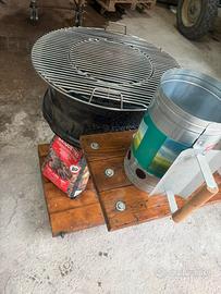 Si puo mettere anche la legna dentro che non si scioglie è in acciaio completo di ruote x lo spostamento regalo accessori solo la griglia della weber costa 100 euro da handy griglia in acciaio (no cinese)