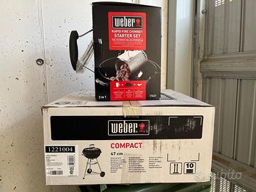 Vendo un Barbecue a carbone Weber Compact 47 cm nero con ciminiera d'accensione compatta "Rapid Fire Chimney", entrambi nuovi inutilizzati e ancora in confezione originale sigillata.