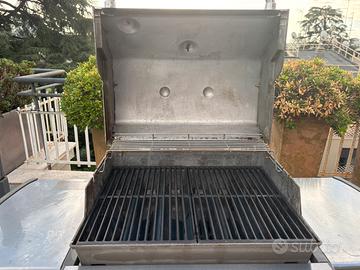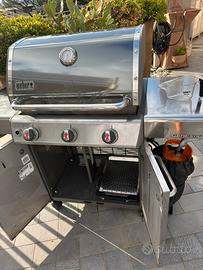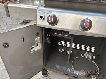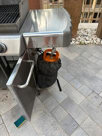 Barbecue weber a gas genesis domensioni larghezza 1.46 cm altezza 1.33 cm profondità 69 cm dispensa con ante, copertura per cottura in forno, griglia in ghisa, piani laterali richiudibili e porta bombole laterale. Si regala bombola, ritiro in sede