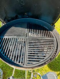 Corredato di griglia modulare in ghisa + modulo in pietra lavica e modulo vassoio valore 130,00 oltre alla griglia originale come nuova versione gourmet acciaio + cover doppio strato antigelo non in foto + ciminiera afthermarket + solleva griglia weber originale + ruotino anteriore con bloccaggio per comodi spostamenti. Il tutto in ottime condizioni. Il barbecue è smaltato e non ha alcun segno di ruggine. Quello che si vede è la pellicola che si è formata durante le cotture aa basse temperature.