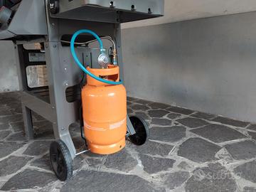 3 bruciatori, griglia di cottura 60 x 46 , termometro sul coperchio, ripiano laterale sin. ripiegabile. Accessori Weber: telo di copertura , griglia aggiuntiva, piastra in ghisa 35 x 50. Bombola vuota.