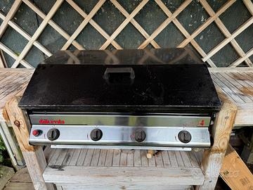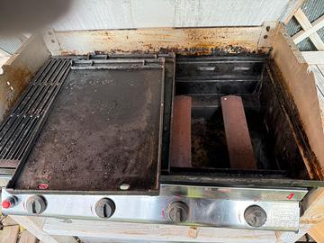 Barbeque a gas 4 fuochi con due piastre e una griglia, e pietra lavica, Copertura antipooggia in pvc.