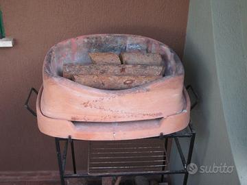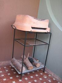 Barbecue in materiale refrattario da balcone o giardino. Il barbecue è scomponibile in 3 parti dal peso contenuto ed è realmente trasportabile con poca fatica. In più vi è una base in ferro fatta su misura che funge da porta legna. Dimensioni cm 55x45x25