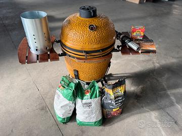 Usato pochissimo, con molti acccessori, ottimo per grigliate, pizza, carne asada. Perfetto nel terrazzo o giardino. Diametro circa 50 cm. Cambio per passaggio a barbeque a gas.