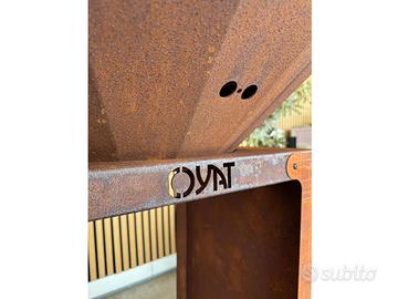 B.B.O Braciere A Legna 78 Cognac di OYAT. EX DISPLAY Progettato con una piastra di cottura da 78 cm di diametro e spessore 10 mm che garantisce una distribuzione uniforme del calore. Ideale per grigliare, grigliare o preparare i vostri piatti preferiti all'aperto. Capacità per 15-20 persone Inoltre, la sua base incorpora uno spazio cavo dedicato alla conservazione della legna, permettendoti di tenere il carburante a portata di mano. Caratteristiche: Finitura in acciaio corten Piastra in acciaio da 78 cm di diametro (10 mm di spessore) per una distribuzione uniforme del calore, ideale per grigliare, cucinare alla piastra e molto altro. Dimensioni: 78 x 78 x 100 centimetri Diametro della piastra: Ø78 cm Dimensioni di base: 45 x 45 x 80 cm Materiale: Acciaio Corten o acciaio verniciato a polvere Peso totale: 55 chili Materiali Durevoli: Realizzato in acciaio corten, resistente POSSIBILITA' DI AGGIUNGERE LA GRIGLIA (COME FOTO ) € 240 39 cm Materiale: acciaio Posizionata direttamente sopra il camino, permette di grigliare con intensità e precisione carne, pesce e verdure, sfruttando tutto il calore del fuoco vivo. - RITIRO PRESSO IL NOSTRO SHOWROOM A GRASSOBBIO (BG) - DISPOSIBILE A SPEDIZIONE a carico dell'acquirente (il costo varia in base alla distanza)
