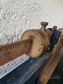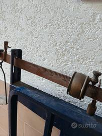 Magnifica e rara Bascula industriale a bilico d'epoca con una portata massima di 300 kg. Un vero pezzo di storia, perfetta non solo per il suo scopo originale (pesatura sacchi, merce pesante, ecc.) ma soprattutto come elemento di arredo design industriale di grande impatto, ideale per loft, taverne o ambienti in stile industrial/vintage, negozi, bar, ristoranti o attività commerciali che cercano un tocco d'epoca autentico, collezionisti di strumenti e pesi antichi.